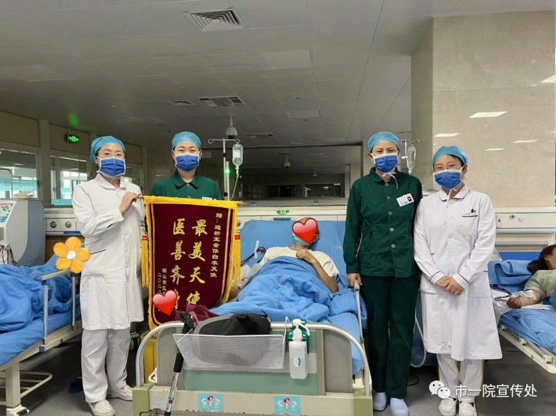 腎內(nèi)科主任王玲表示,血液透析患者是一個特殊的群體,他們是患者,以醫(yī)院為家,他們不僅僅需要治療,更需要被關愛;颊呓o我們送來錦旗,是對科室全體醫(yī)護人員工作的認可和肯定,同時也是一種鞭策,科室將不斷提高血液凈化技術及診療能力,為患者建立牢靠的血管通路,提供高質(zhì)量的透析服務,守護好透析患者的生命線和健康安全。
