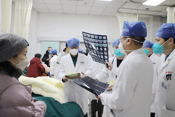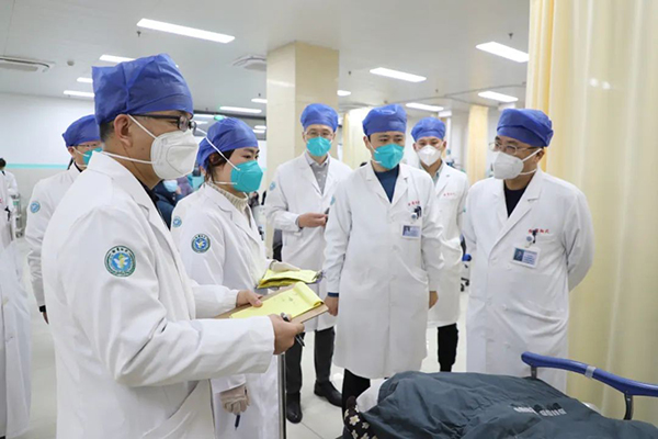 本部、東院兩個院區(qū)床位全部開放,落實應(yīng)收盡收,專家巡回指導(dǎo),保證診療同質(zhì)化。所有科室均按醫(yī)院統(tǒng)籌收治新冠病毒感染患者。醫(yī)院成立新冠病毒感染重癥救治專家組,專家巡診包干,28位專家下沉到各自包干病區(qū),分區(qū)指導(dǎo)患者收治。