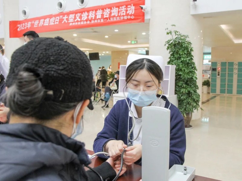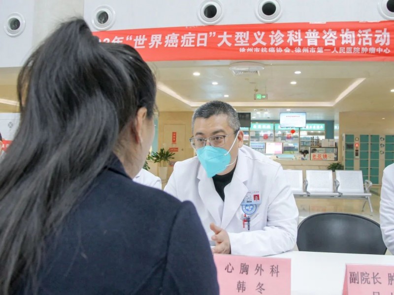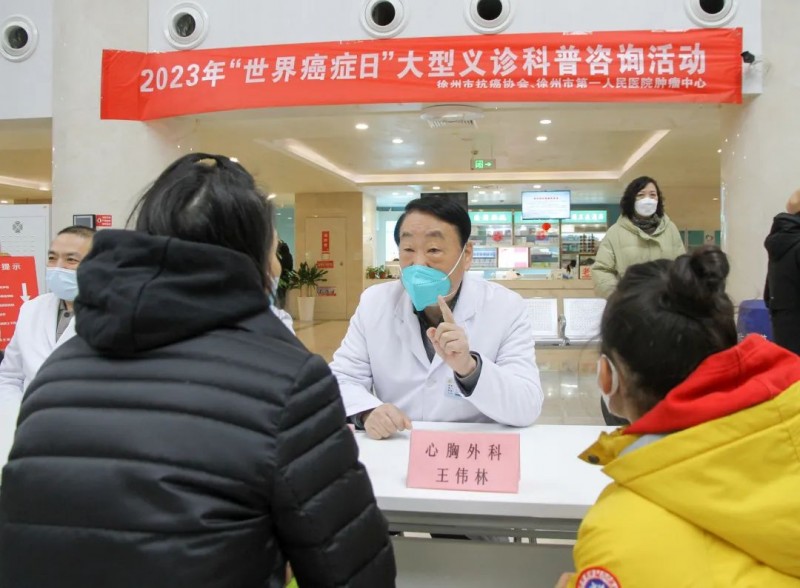 徐州市第一人民醫(yī)院3號(hào)樓門診大廳內(nèi)人頭攢動(dòng),義診咨詢臺(tái)前,來自徐州市第一人民醫(yī)院腫瘤中心、心胸外科、婦科、甲狀腺乳腺外科、呼吸與危重癥醫(yī)學(xué)科、胃腸外科、心內(nèi)科等各領(lǐng)域資深專家與前來咨詢的民眾面對(duì)著面,傾聽他們的困擾,解答他們的疑惑,用淺顯易懂的語言講授科學(xué)理念和防治知識(shí),為他們的防癌抗癌之路提供指引和參考。