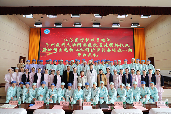 黃淮網(wǎng) 2023年2月7日,徐州醫(yī)科大學(xué)附屬醫(yī)院舉行“江蘇省醫(yī)療護(hù)理員培訓(xùn)”第一期開班儀式暨“江蘇省醫(yī)療護(hù)理員培訓(xùn)基地”揭牌儀式。江蘇省護(hù)理學(xué)會(huì)理事長霍孝蓉、徐州市護(hù)理學(xué)會(huì)理事長夏靜、徐醫(yī)附院副院長燕憲亮、金屯物業(yè)公司總經(jīng)理閆吉平等出席儀式并共同為基地揭牌。
