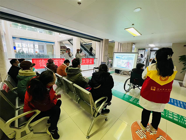新年伊始,徐州市中醫(yī)院2023年度健康大講堂在門(mén)診候診區(qū)開(kāi)講,候診的患者及家屬紛紛前來(lái)聽(tīng)課,醫(yī)院志愿服務(wù)隊(duì)同步開(kāi)展形式多樣的助力健康講堂志愿服務(wù)。據(jù)悉,健康大講堂每周二周四會(huì)邀請(qǐng)不同科室醫(yī)師,小規(guī)模、面對(duì)面進(jìn)行宣講,通過(guò)醫(yī)師講解、聽(tīng)眾提問(wèn)及現(xiàn)場(chǎng)互動(dòng)等形式,為就診患及家屬宣常見(jiàn)病、多發(fā)病、慢性病防治知識(shí),為患者搭建獲得健康的知識(shí)平臺(tái),引導(dǎo)大家逐步樹(shù)立健康的生活觀念。