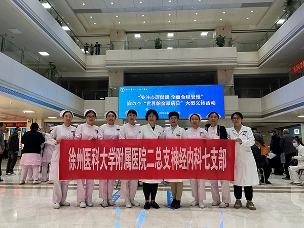 黃淮網(wǎng)(彭影)2023年4月11日是第27個(gè)“世界帕金森病日”。當(dāng)天上午,在徐州醫(yī)科大學(xué)附屬醫(yī)院二總支書記馬秋芳同志、二總支七支部書記崔桂云教授的帶領(lǐng)下,徐醫(yī)附院神經(jīng)內(nèi)科醫(yī)護(hù)團(tuán)隊(duì)聯(lián)合康復(fù)醫(yī)學(xué)科主任項(xiàng)潔教授等專家,在病房主樓服務(wù)大廳開展了“關(guān)注心理健康,全面全程管理”主題黨日暨大型義診活動(dòng)。