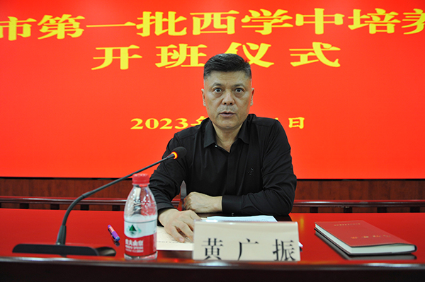 黃廣振代表市衛(wèi)健委向入選學(xué)員表示熱烈的祝賀,向承辦培訓(xùn)的揚州大學(xué)和徐州市中醫(yī)院表示衷心的感謝。他分別從學(xué)習(xí)習(xí)總書記對中醫(yī)藥的重要論述;新冠疫情防治防控通過中西醫(yī)結(jié)合優(yōu)勢互補,為疫情防控工作作出突出貢獻;屠呦呦等多名西學(xué)中代表人物取得了豐碩成果等,多層次、全方位、廣維度深度剖析了中西醫(yī)結(jié)合的優(yōu)勢所在,闡釋了要加強中西醫(yī)結(jié)合人才培養(yǎng)的重要性和必要性。對于怎樣完成西學(xué)中的學(xué)習(xí)任務(wù),黃主任提出四點要求:一是真心熱愛中醫(yī),增強學(xué)習(xí)自覺;二是明確學(xué)習(xí)重點,把握中醫(yī)精髓;三是掌握學(xué)習(xí)途徑,練就過硬本領(lǐng);四是堅持優(yōu)勢互補,強化創(chuàng)新引領(lǐng),堅定理想信念,要學(xué)有所獲、學(xué)有所得、學(xué)有所為,同時對承辦單位提出相關(guān)教學(xué)要求。