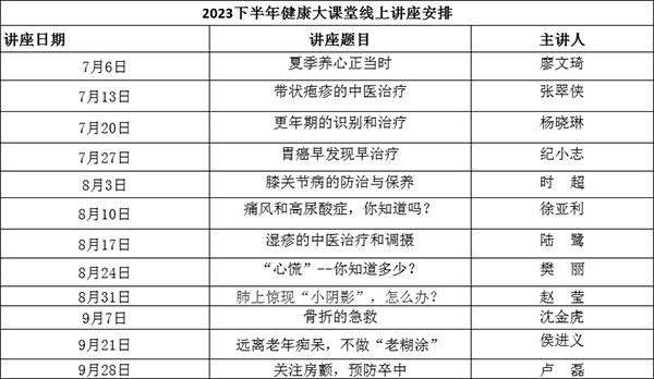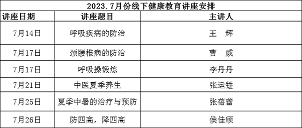 2023年7月份線上健康講座