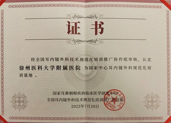 徐醫(yī)附院成為國(guó)家中心耳內(nèi)鏡外科規(guī)范化培訓(xùn)基地,兩位專家受聘全國(guó)協(xié)作組成員