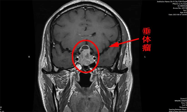 ▲ 術(shù)前頭部MRI示:垂體瘤