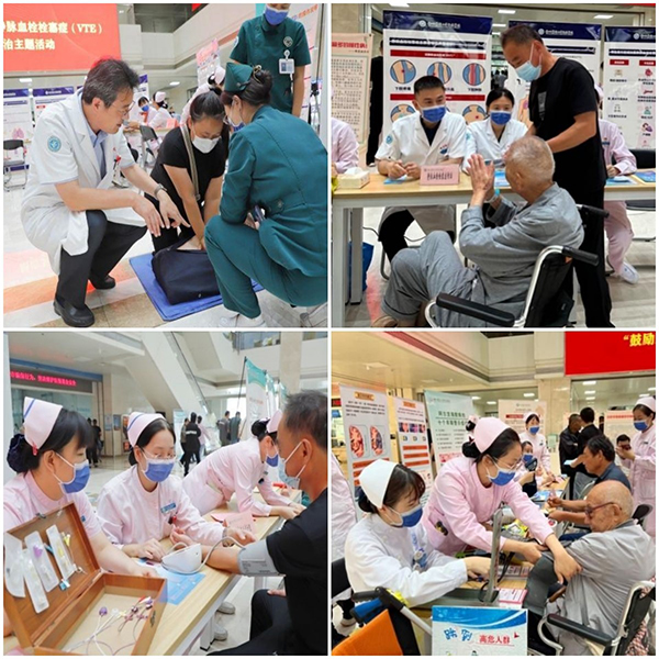 “靜脈血栓”防治體驗(yàn)項(xiàng)目:徐醫(yī)附院VTE防治專家組和防栓小組針對(duì)靜脈血栓栓塞癥的危害、典型癥狀、常見因素以及相應(yīng)的預(yù)防措施做了相關(guān)知識(shí)的科普和宣教,現(xiàn)場(chǎng)還針對(duì)VTE中高;颊哌M(jìn)行氣壓治療的體驗(yàn),讓患者對(duì)物理預(yù)防措施有更直觀的認(rèn)識(shí)。