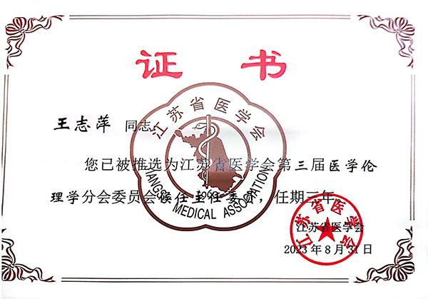 徐醫(yī)附院王志萍教授當選江蘇省醫(yī)學會第三屆醫(yī)學倫理學分會委員會候任主任委員
