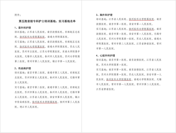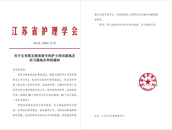 黃淮網(wǎng)(莊文婷)12月17日,江蘇省護理學會發(fā)布《關(guān)于公布第五批省級?谱o士培訓基地及實習基地名單的通知》(蘇護會〔2023〕51號),徐州醫(yī)科大學附屬醫(yī)院憑借其綜合實力、?苾(yōu)勢、豐富的實踐經(jīng)驗,成功獲批省級“普外科護理?谱o士培訓基地、實習基地”、“胸外科護理?谱o士培訓基地、實習基地”、“傳染病護理專科護士實習基地”及“心臟外科護理?谱o士實習基地”,展現(xiàn)了徐醫(yī)附院在護理領(lǐng)域的專業(yè)優(yōu)勢和影響力,標志著該院專科護士基地建設(shè)再上新臺階!