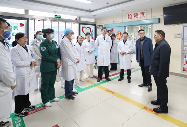玉兔辭舊春華啟,龍騰新春氣象新。2024年2月10日,農(nóng)歷大年初一,徐州市中醫(yī)院黨委書記范從海、院長(zhǎng)殷海濤攜領(lǐng)導(dǎo)班子成員和部分職能科室負(fù)責(zé)人來(lái)到醫(yī)院預(yù)檢分診臺(tái)、門診各診室和病房,走訪慰問(wèn)春節(jié)期間仍堅(jiān)守在一線的工作人員,為他們送去新春的祝福和親切的問(wèn)候,對(duì)大家的無(wú)私奉獻(xiàn)表示衷心的感謝!