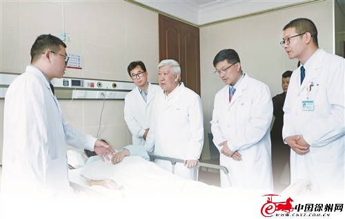 顧玉東院士在查房。 本報(bào)記者 秦媛 攝