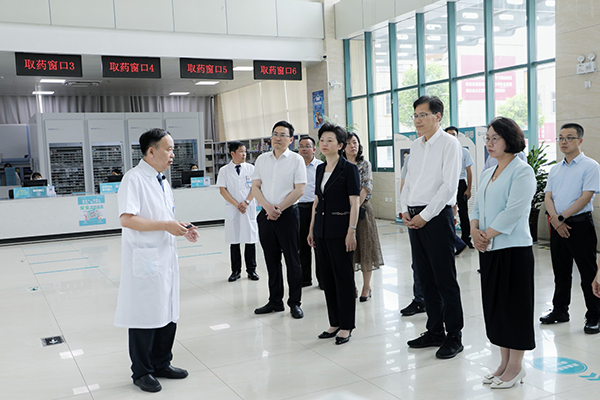 黃淮網 7月25日下午,江蘇省衛(wèi)健委主任譚穎、副主任張金宏一行前往泗洪縣第一人民醫(yī)院進行現(xiàn)場調研,徐州醫(yī)科大學黨委常委、副校長、我院黨委書記呂凌,院長金培生、副院長王志萍陪同調研。