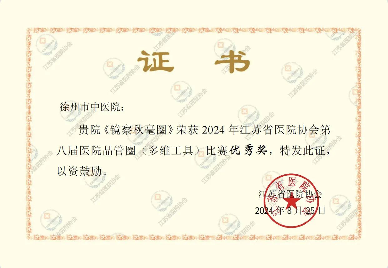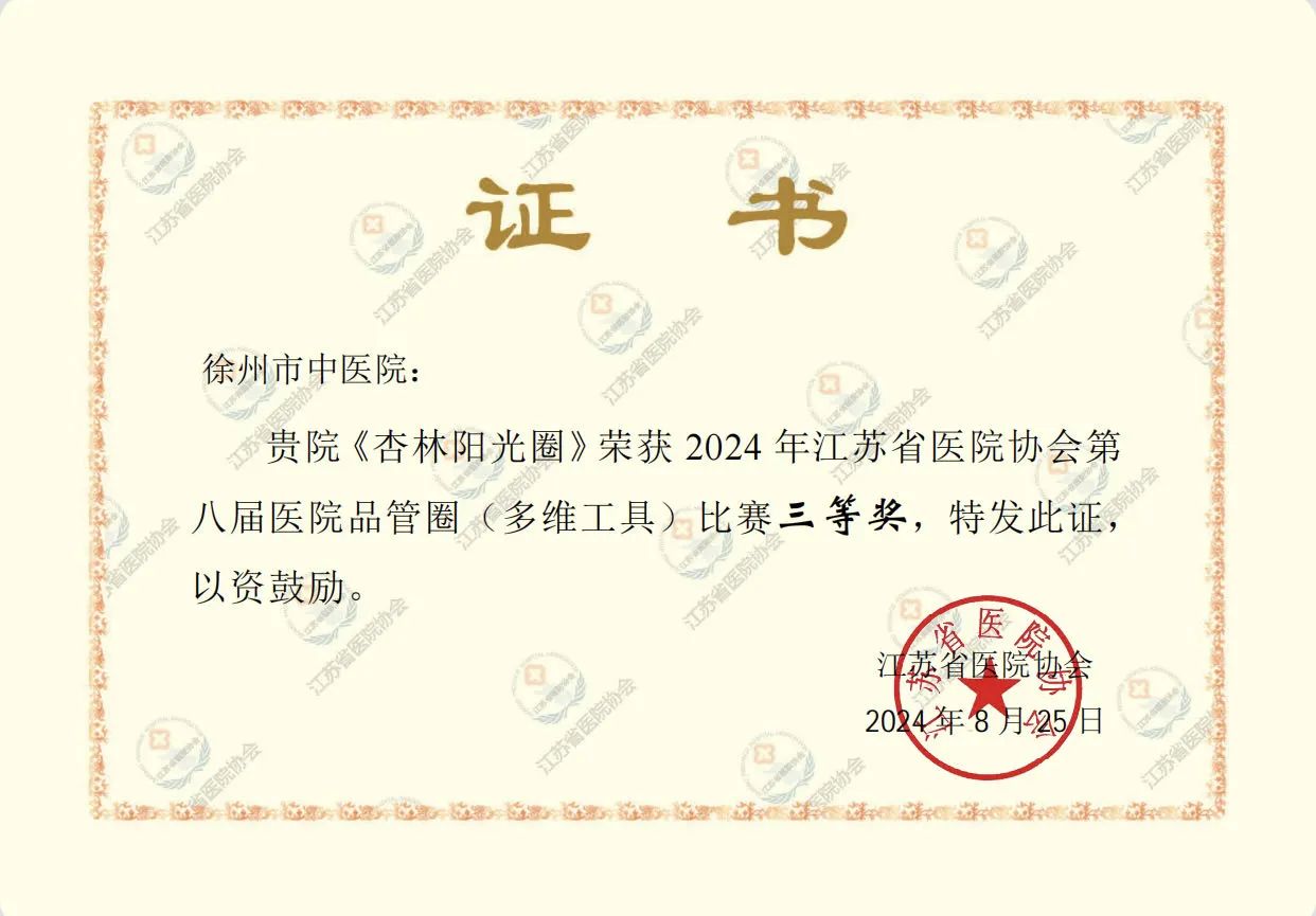 黃淮網(wǎng) 8月23日-8月25日,江蘇省醫(yī)院協(xié)會第八屆醫(yī)院品管圈(多維工具)比賽在南京舉行。徐州市中醫(yī)院門診部通過院內(nèi)選拔,選送2個品管圈參賽。8月25日,江蘇省醫(yī)院協(xié)會公布比賽結(jié)果,2個圈組分別榮獲三等獎1項、優(yōu)秀獎1項。