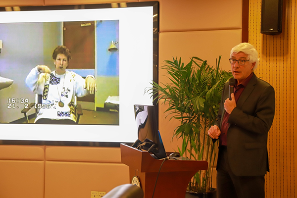 Jean Marc Burgunder教授做了學術專題報告,并結合自己多年的研究經驗分享了國際前沿動態(tài),帶來了一場內容豐富、見解獨到的學術盛宴。崔桂云教授就徐醫(yī)附院神經內科的概況和帕金森及運動障礙疾病中心取得的成果進行了全英文匯報。朱潔楠主治醫(yī)生就運動障礙疾病亨廷頓的全程管理做了全英文分享。在討論環(huán)節(jié),神經內科許剛、張偉、董麗果、徐傳英副主任醫(yī)師等帕金森及運動障礙疾病中心團隊成員全程用英文與Jean-Marc教授親切互動,氣氛熱烈。