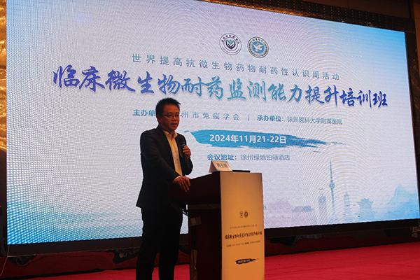 黃淮網(wǎng)(孫寧娜)11月21日,由徐州醫(yī)科大學(xué)附屬醫(yī)院醫(yī)學(xué)檢驗(yàn)科主辦的“2024世界提高抗微生物耐藥性認(rèn)識(shí)周”活動(dòng)暨臨床微生物監(jiān)測(cè)能力提升培訓(xùn)班在徐州舉行。國(guó)家衛(wèi)生健康委員會(huì)合理用藥辦公室副主任、中國(guó)藥師協(xié)會(huì)秘書長(zhǎng)、全國(guó)細(xì)菌耐藥監(jiān)測(cè)網(wǎng)負(fù)責(zé)人劉曉琳教授,徐州醫(yī)科大學(xué)附屬醫(yī)院常務(wù)副院長(zhǎng)顧玉明教授出席活動(dòng)并致辭。來自省內(nèi)及周邊省市的150余名學(xué)員參與此次活動(dòng)。