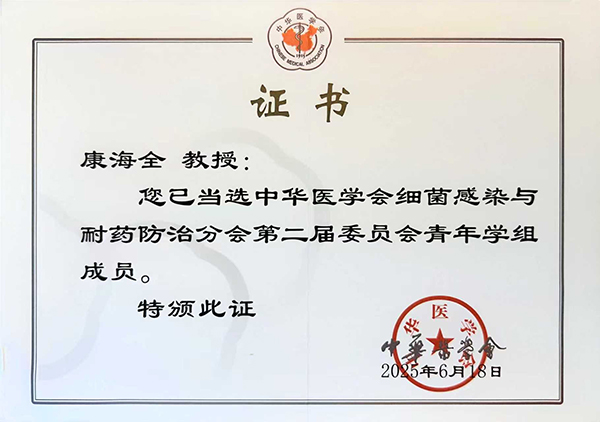 會(huì)上,徐州醫(yī)科大學(xué)附屬醫(yī)院檢驗(yàn)科副主任康海全當(dāng)選為中華醫(yī)學(xué)會(huì)細(xì)菌感染與耐藥防治分會(huì)第二屆委員會(huì)青年學(xué)組委員。