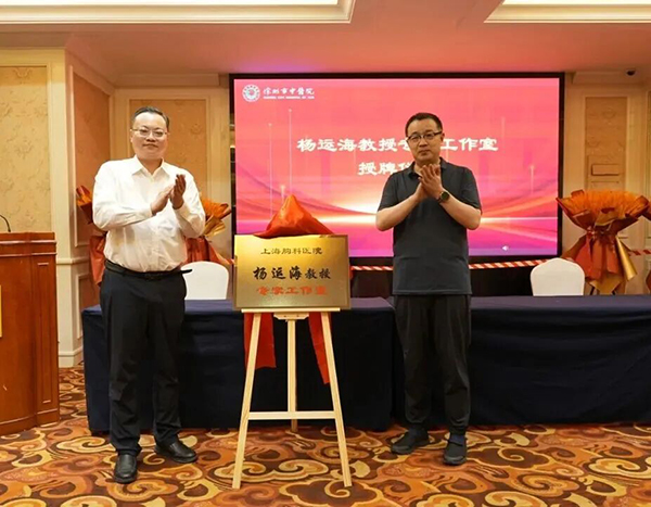 徐州市中醫(yī)院黨委委員、副院長(zhǎng)季培琛與上海市胸科醫(yī)院楊運(yùn)海教授共同為工作室揭牌。