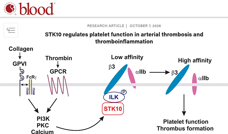 本項研究揭示了蛋白激酶STK10在調控血小板參與動脈血栓和血栓炎癥反應中的新機制,為血栓相關疾病的治療提供潛在策略和靶點。