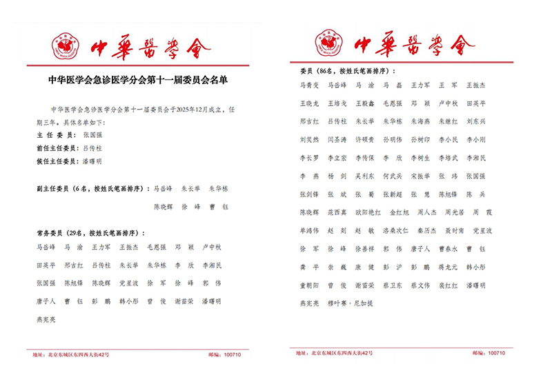 徐醫(yī)附院燕憲亮教授當(dāng)選中華醫(yī)學(xué)會(huì)急診醫(yī)學(xué)分會(huì)常務(wù)委員