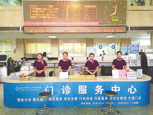 為規(guī)范業(yè)務管理,一站式服務中心所有工作人員均統(tǒng)一著裝,佩戴胸卡,接受監(jiān)督;服務中心建立了科室臺賬、常急用藥品交接本、電話接聽本,并制定了溫馨提示牌,告訴患者如何用就診卡快速掛號、繳費,提示患者填寫完整病歷;門診大廳設立自助打印機方便患者打印化驗單;在寒暑假高峰期實行彈性排班,保證患者就醫(yī)方便。