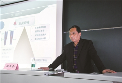 徐醫(yī)附院骨科主任郭開今教授在論壇中闡述了《骨科大手術(shù)圍手術(shù)期DVT(下肢深靜脈血栓)預(yù)防》,提到骨科手術(shù)中住院患者DVT發(fā)生率高達(dá)80%,日常生活中高危人群久臥久坐可能誘發(fā)DVT,引起與會專家重視。