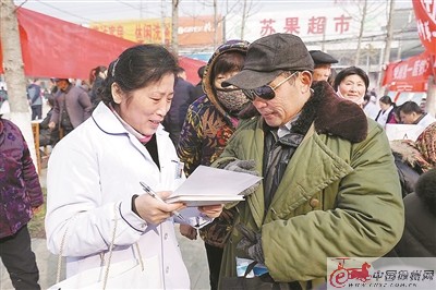 1月10日,徐州市邳州新河鎮(zhèn)中心廣場(chǎng)上人聲鼎沸、熱鬧非凡。市衛(wèi)生計(jì)生委率市第一人民醫(yī)院醫(yī)療專(zhuān)家在此舉行“三下鄉(xiāng)”義診活動(dòng)。每位專(zhuān)家的席位前都圍得水泄不通。“能把大專(zhuān)家請(qǐng)到家門(mén)口,可不能錯(cuò)過(guò)這難得的機(jī)會(huì)。”盡管天氣寒冷,場(chǎng)地有限,但是群眾的熱情很高。