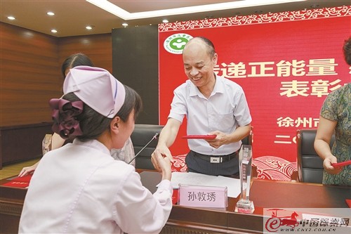 市兒童醫(yī)院黨委書(shū)記孫敦琇給獲獎(jiǎng)?wù)哳C獎(jiǎng)