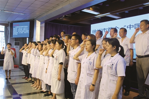 8月19日上午,徐礦總醫(yī)院200多名醫(yī)生在醫(yī)院會(huì)議室舉行了莊嚴(yán)的宣誓,共迎中國第一個(gè)醫(yī)師節(jié)。這一特殊的日子里,在復(fù)旦大學(xué)附屬華山醫(yī)院的神經(jīng)內(nèi)外科專家和淮海經(jīng)濟(jì)區(qū)業(yè)內(nèi)專家共同見證下,淮海經(jīng)濟(jì)區(qū)神經(jīng)內(nèi)外科疑難病會(huì)診中心在礦總院掛牌成立。儀式后,諸位專家在國家級(jí)繼教項(xiàng)目“急性腦梗死規(guī)范化診治研究進(jìn)展”培訓(xùn)班上,與來自臨床一線的醫(yī)學(xué)同仁分享了最新學(xué)術(shù)成果。