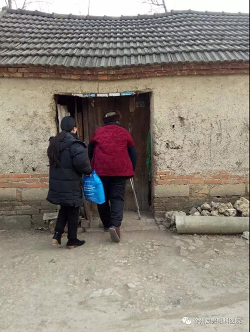 出院后同事專程將劉大爺送到家中。映入眼簾的是并不是想象中的二層小樓房,而是只有一層瓦片頂?shù)男⊥练。墻面因為時間的沖刷水泥已經(jīng)剝落,露出紅色的磚,墻角堆著一堆堆的碎磚頭。推開木門,是類似于四合院一樣的構(gòu)造,中間是一片小田地,里面種著一些蔥和薺菜。這些情景讓人看了難免有些心酸。