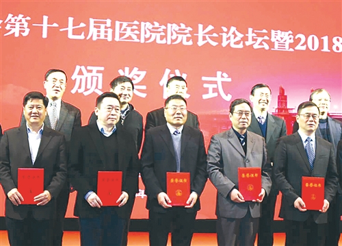 2018年“揚子江杯”江蘇省優(yōu)秀醫(yī)院院長頒獎現(xiàn)場(前排中為徐州市中心醫(yī)院院長王培安)。