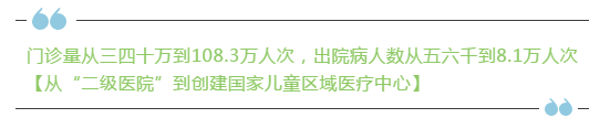 從職工300多人到如今的1700余人,從三四十萬的年門診量到去年的108.3萬人次,從五六千人的出院病人數(shù)到去年的8.1萬人次,從四五千例的手術(shù)量到去年的20597例,從床位不足百張到開放床位1498張,F(xiàn)在的徐州市兒童醫(yī)院,早已實現(xiàn)了跨越式發(fā)展,在淮海經(jīng)濟區(qū)的影響力和輻射力日益擴大。
