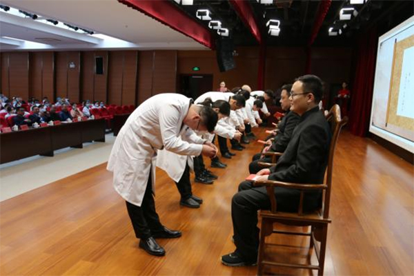 院黨委書記盧國君為儀式致辭,盧書記強(qiáng)調(diào),“師帶徒”儀式的舉辦是醫(yī)院打造“人才強(qiáng)院”、實(shí)施“三名”戰(zhàn)略、積極推進(jìn)我院特色化、品牌化發(fā)展之路的重要舉措。他要求,徒弟們應(yīng)把握這次醫(yī)院搭建的平臺,虛心求教、傳承岐黃、開拓創(chuàng)新,傳承名醫(yī)專家衣缽并早日成為醫(yī)院事業(yè)發(fā)展的棟梁之才!