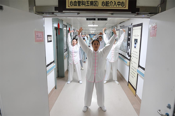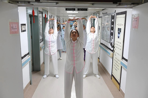 為了保證活動有序進行,科室制定了詳細的活動計劃和實施方案,包括活動時間、場地安排、示教人員排班、物品準(zhǔn)備、參加鍛煉患者的篩選以及活動應(yīng)急預(yù)案;顒觿傞_始也伴隨著阻力,很多患者表示質(zhì)疑,覺得沒什么作用,醫(yī)護人員對此采取多媒體播放、健康講座、現(xiàn)場教學(xué)等多種形式,循序漸進對患者進行引導(dǎo)。隨著活動的深入進行,每天下午鍛煉人數(shù)越來越多,大家從剛開始的動作不規(guī)范、不統(tǒng)一、不熟練到動作柔和圓滑、剛?cè)岵?在病區(qū)形成了一道獨特的風(fēng)景線。很多患者紛紛表示每天練習(xí)十分鐘,身體得到了科學(xué)的鍛煉,還很好地緩解了住院期間煩悶的心情。