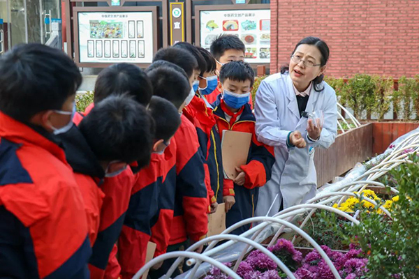 11月17日下午,求是小學(xué)一行師生來(lái)到了徐州市中醫(yī)院中醫(yī)外治法展示館。在藥劑科王慧主任的帶領(lǐng)下,同學(xué)們首先參觀了“百草園”。這里匯聚了眾多珍貴的中藥材,不僅有金銀花、何首烏、菊花等常見(jiàn)藥材,還有許多珍稀、瀕危的藥材。在園內(nèi),同學(xué)們近距離觀察各種藥材的生長(zhǎng)狀況,了解它們的生長(zhǎng)習(xí)性和藥用價(jià)值。王慧主任耐心細(xì)致地解答同學(xué)們的問(wèn)題,并告訴大家,百草園不僅是一個(gè)迷你植物園,更是一個(gè)中醫(yī)藥知識(shí)寶庫(kù),一草一木皆是博大精深的中醫(yī)藥文化縮影。在欣賞美景的同時(shí),同學(xué)們更增長(zhǎng)了中醫(yī)藥相關(guān)的知識(shí)。