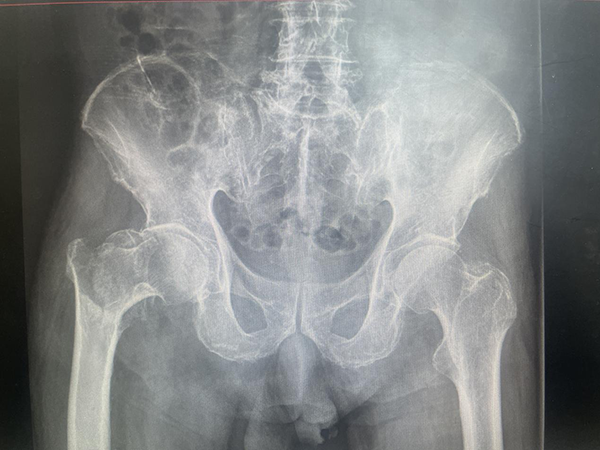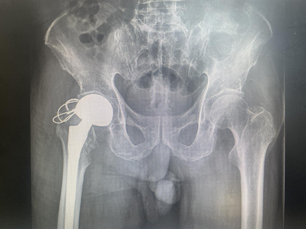 89歲的陳大爺在家中不慎摔倒,右側(cè)髖部著地后無(wú)法站立。于當(dāng)?shù)鼐驮\行X線檢查后診斷為“髖部骨折(股骨粗隆間骨折)”。髖部骨折又被稱為“人生的最后一次骨折”。75歲以上老人如遭遇髖部骨折,生活將難以自理,大部分需要長(zhǎng)期臥床,極易導(dǎo)致褥瘡、肺炎和血栓的發(fā)生,嚴(yán)重可危及生命。因此,髖部骨折建議首選手術(shù)治療。陳大爺經(jīng)兩月保守治療無(wú)果后,為尋求站起來(lái)的可能,來(lái)到徐州市中醫(yī)院骨科就診。如何為陳大爺選擇一個(gè)合適的手術(shù)方案顯得尤為重要。89歲高齡,臥床保守治療期間出現(xiàn)肺部感染及深靜脈血栓等并發(fā)癥,既往有房顫、肺栓塞等病史,此次髖部骨折對(duì)陳大爺來(lái)說(shuō)意味著直面死亡。即便高齡,但陳大爺思維清晰,下地行走活動(dòng)欲望強(qiáng)烈,經(jīng)過(guò)溝通后堅(jiān)持要求給予手術(shù)治療。