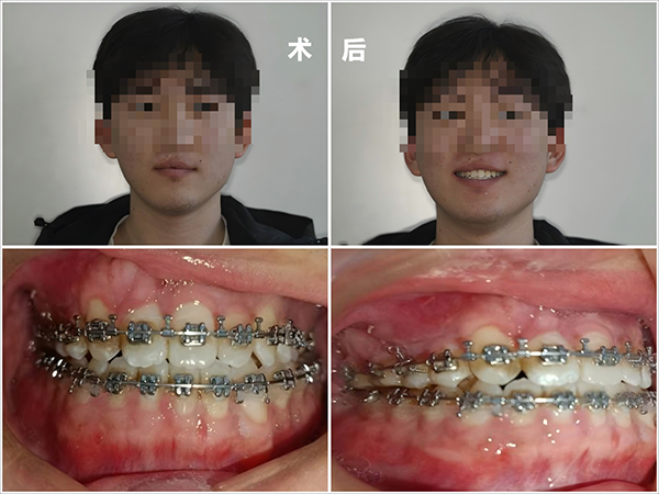 大學(xué)生周同學(xué)為先天性唇腭裂畸形,既往完成了唇腭裂修補(bǔ)術(shù),但隨著身體的成長,腭裂導(dǎo)致的上頜骨發(fā)育不足及下頜骨發(fā)育過度,逐漸形成了“地包天”面容,給小周同學(xué)帶來了面容外觀上的焦慮,并且影響正常進(jìn)食。為求進(jìn)一步治療,至徐醫(yī)附院口腔科就診,正畸科吳文文副主任醫(yī)師經(jīng)過仔細(xì)檢查后診斷為先天性唇腭裂術(shù)后,骨性III類錯牙合畸形(上頜后縮,下頜前突);颊咭虬橛邢忍煨源诫窳,骨畸形嚴(yán)重,牙齒情況復(fù)雜,需要進(jìn)行術(shù)前正畸-正頜手術(shù)-術(shù)后正畸等系統(tǒng)治療。吳文文副主任醫(yī)師與患者充分溝通,告知患者詳細(xì)治療計劃,取得患者知情同意后首先為患者進(jìn)行術(shù)前正畸治療。徐醫(yī)附院口腔科作為上海第九人民醫(yī)院牙頜面畸形診治聯(lián)盟的一員,在正頜手術(shù)中特別邀請上海交通大學(xué)醫(yī)學(xué)院附屬第九人民醫(yī)院于洪波教授前來指導(dǎo),手術(shù)后經(jīng)過吳主任的進(jìn)一步精細(xì)調(diào)整,取得了良好的效果,患者對治療后的面部容貌及牙齒咬合特別滿意。