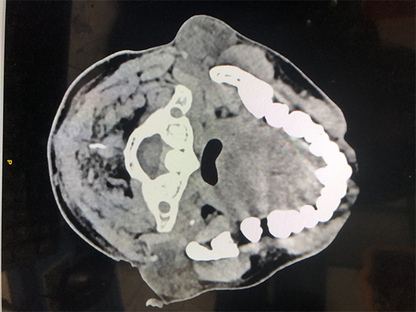 患者為中年男性,因“右側(cè)耳后腫物1年”入院;颊咦允1年來發(fā)現(xiàn)右側(cè)耳后腫物漸進性增長,抗炎治療無效,現(xiàn)影響面容遂來就診。