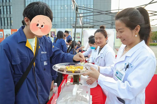 中醫(yī)藥文化展示區(qū)陳列的驅(qū)蚊花露水、杞菊養(yǎng)生茶、枸杞蛋糕、中醫(yī)藥文化手冊(cè)等文創(chuàng)及養(yǎng)生產(chǎn)品,將中醫(yī)“治未病”理念融入生活場(chǎng)景。非遺中藥炮制技藝傳承人現(xiàn)場(chǎng)演示傳統(tǒng)制藥工藝,讓產(chǎn)業(yè)工人近距離感受中醫(yī)藥文化的魅力。“沒(méi)想到中醫(yī)養(yǎng)生這么貼近生活,這個(gè)養(yǎng)生茶配方我得記下來(lái)。”一位工人拿著中醫(yī)藥文化手冊(cè)感慨道。