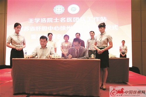 2017年8月10日,王學(xué)浩院士名醫(yī)團(tuán)隊工作站暨江蘇省肝膽中心徐州分中心在市腫瘤醫(yī)院掛牌成立。在綠地皇冠假日酒店舉行的簽約儀式上,100余位來自徐州及淮海經(jīng)濟(jì)區(qū)6個市級醫(yī)院、23家縣級醫(yī)院的領(lǐng)導(dǎo)專家及臨床醫(yī)生見證了這一歷史時刻。儀式之后,王學(xué)浩名醫(yī)團(tuán)隊作了三場外科學(xué)術(shù)報告。