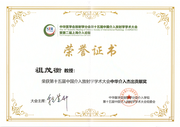 迄今,祖茂衡共獲發(fā)明專利3項(xiàng)、實(shí)用新型專利4項(xiàng),榮膺國家科技進(jìn)步二等獎、中國僑界創(chuàng)新成果獎、中華醫(yī)學(xué)科技進(jìn)步獎、江蘇省科技進(jìn)步獎等20余項(xiàng)。2018年,他被中國靜脈介入聯(lián)盟授予“中國靜脈介入大師”稱號。