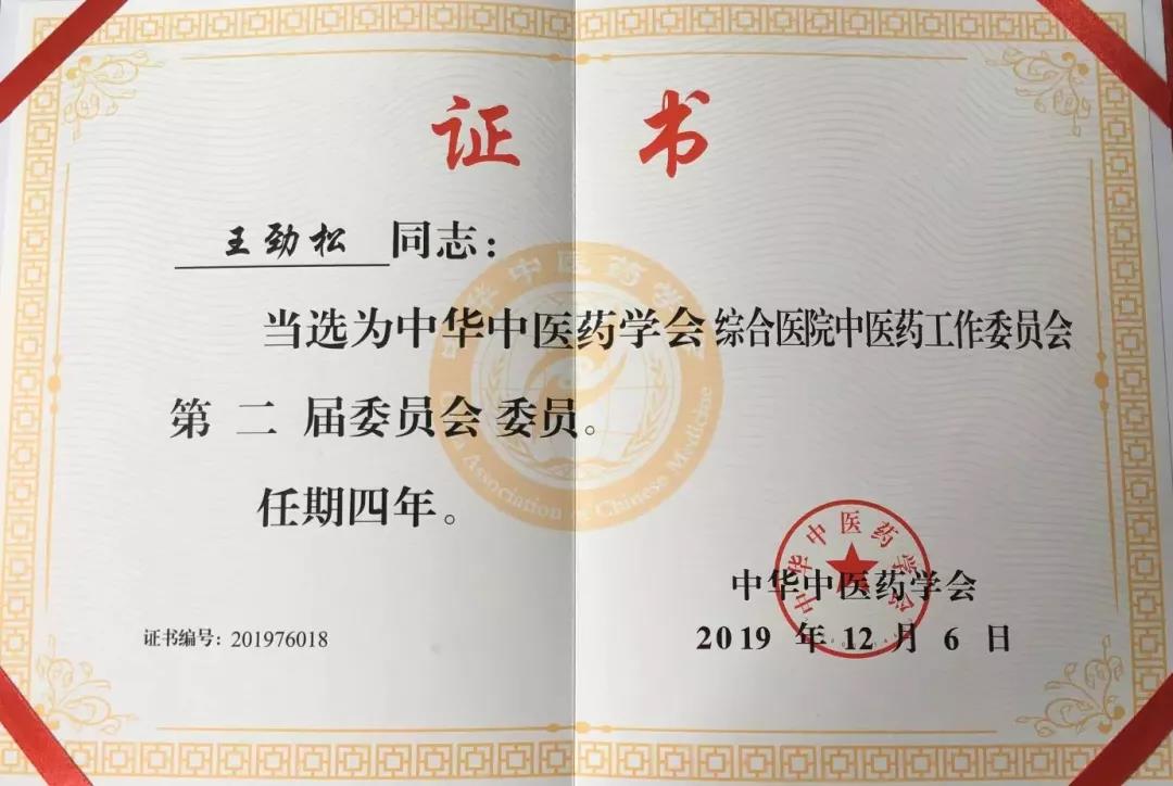 徐州市第一人民醫(yī)院王勁松當選為中華中醫(yī)藥學會綜合醫(yī)院中醫(yī)藥工作委員會第二屆委員會委員