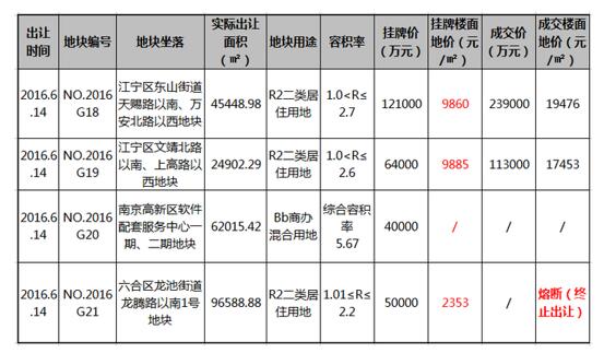 隨后,江寧青龍山新城G19地塊被中南以11.3億元拿下,樓面價(jià)每平方米17453元,而江北高新區(qū)G20地塊被唯一競(jìng)買人明發(fā)以4億元地價(jià)收獲囊中。值得注意的是,由于超過最高限價(jià),南京六合區(qū)G21地塊最后流拍。