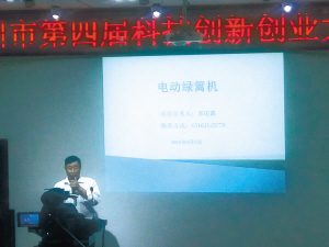 另外一個(gè)電功綠籬機(jī)項(xiàng)目,是草根創(chuàng)業(yè)項(xiàng)目,項(xiàng)目負(fù)責(zé)人李慶森無(wú)意中受到中央電視臺(tái)“我愛(ài)發(fā)明”欄目的啟發(fā),50歲開(kāi)始創(chuàng)業(yè),進(jìn)行電動(dòng)綠籬機(jī)的研發(fā)。該項(xiàng)目入駐徐州永嘉科技園眾創(chuàng)空間后,嘉友會(huì)工作人員幫助制作商業(yè)計(jì)劃書(shū)和項(xiàng)目路演PPT,推薦其參加比賽,并以?xún)?yōu)異成績(jī)進(jìn)入徐州市科技創(chuàng)新創(chuàng)業(yè)大賽決賽。通過(guò)比賽,該項(xiàng)目知名度大大提高,同時(shí)深圳前海股權(quán)交易中心投資人非?春迷擁(xiàng)目,正在積極幫助該項(xiàng)目進(jìn)行融資。永嘉科技園為其免費(fèi)提供研發(fā)場(chǎng)地,協(xié)助申請(qǐng)發(fā)明專(zhuān)利1項(xiàng),并幫助其辦理公司工商注冊(cè)手續(xù)。