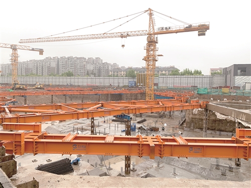 目前,新型裝配式大跨度張弦梁鋼支撐技術(shù)已成功應(yīng)用于本項目兩層地下室深基坑工程,項目推進有序進行。該新技術(shù)由同濟大學(xué)與江蘇三力巖土科技有限公司合作,獲得了多項發(fā)明專利。新技術(shù)采用標準鋼構(gòu)件,現(xiàn)場組合裝配,基坑工程結(jié)束后即可拆除,拆除后的鋼構(gòu)件可在后續(xù)同類項目中重復(fù)利用,施工現(xiàn)場無二次污染、無噪音、無揚塵等,符合綠色環(huán)保的建筑新理念,該技術(shù)目前處于國內(nèi)領(lǐng)先水平。與傳統(tǒng)的鋼支撐、混凝土支撐相比,新型裝配式大跨度張弦梁鋼支撐構(gòu)件全部標準化工廠加工,裝配組合體系性能安全可靠,所有構(gòu)件現(xiàn)場組合拼裝,大大縮短了基坑工程施工工期,尤其大跨度張弦梁體系的采用,為土方開挖提供了較大的作業(yè)空間,僅此項就縮短工期近20天。