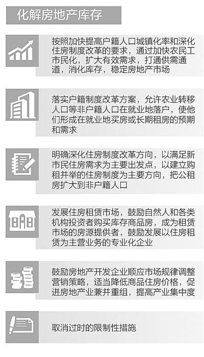 正是基于目前的樓市特點與人口特征,今年中央經(jīng)濟(jì)工作會議為樓市去庫存開出的藥方更加突出改革紅利,按照加快提高戶籍人口城鎮(zhèn)化率和深化住房制度改革的要求,通過加快農(nóng)民工市民化,擴(kuò)大有效需求,打通供需通道,消化庫存,穩(wěn)定房地產(chǎn)市場。