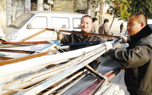 位于銅山傳染病院西側的三環(huán)西路路東,有一處長達700米的建筑垃圾死角,湖濱辦事處城管隊員連日來加班加點,共清掃清運垃圾20多車。泉山區(qū)城管局副局長溫成介紹,此次行動不僅對占道經營、違規(guī)廣告、簡易亭棚、生活與建筑垃圾進行整治,還將對三環(huán)西路沿街建筑共62000平方米的外立面進行統(tǒng)一粉刷,將清洗678個卷簾門,對雜亂不齊的門牌廣告進行統(tǒng)一規(guī)范,還將施劃非機動車停車線,規(guī)范非機動車停放。