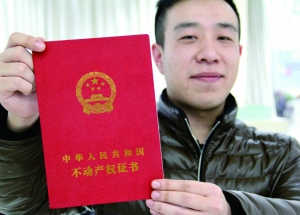 高淳居民趙家威昨天領(lǐng)到南京首本不動(dòng)產(chǎn)權(quán)證書(shū) 通訊員供圖