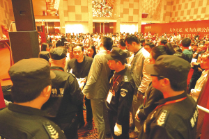 2點鐘活動開始,現(xiàn)場已經(jīng)是座無虛席,粗略估計有500多人。在開盤現(xiàn)場,當(dāng)每一輪的搖號環(huán)節(jié)結(jié)束,選房大廳始終是氣氛緊張。雖然已經(jīng)過去了一個多小時,但按號選房的環(huán)節(jié)剛剛進(jìn)行了一半,還有近一半的客戶在耐心等待。