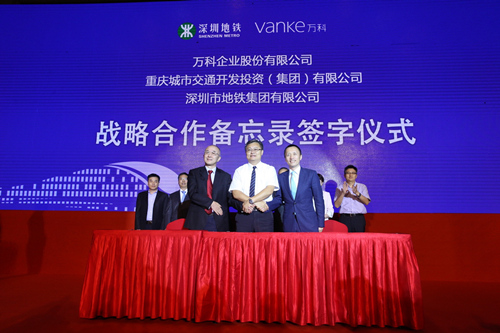 萬(wàn)科在今天的論壇上與深圳地鐵集團(tuán)一起,同重慶市交通開(kāi)發(fā)投資(集團(tuán))有限公司、東莞實(shí)業(yè)投資控股集團(tuán)有限公司、中軌控股集團(tuán)有限公司等企業(yè)簽署了合作備忘錄。