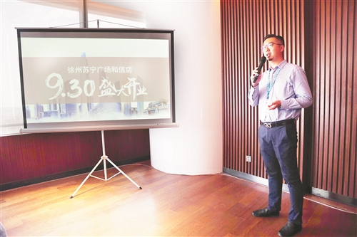 徐州蘇寧廣場(chǎng)和信店常務(wù)副總經(jīng)理汪磊先生向大家介紹蘇寧廣場(chǎng)和信店概況。呂品 攝